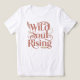 Embrace your inner spirit with this "Wild Soul Rising" graphic. Featuring elegant script typography in earthy rose gold tones accented with delicate feathers, this boho-chic look is perfect for free spirits, yoga lovers, and anyone on a spiritual journey.