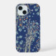 A beautiful boho phone case with wildflowers in light blue and orange on a navy textured background.
