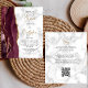 A borda esquerda deste elegante convite de casamento moderno mostra uma borda de água borrifada, cortada com falsa brilho dourado. O texto personalizável combina o script dourado da tendência e as fontes de sans negras serif em uma cinza e fundo de mármore branco. O verso fornece espaço para detalhes do casamento em um fundo de mármore, junto com um código QR que os convidados podem digitalizar para visitar seu site e RSVP, o que economiza o custo de imprimir e enviar cartões RSVP separados.