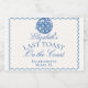 Elegante design de fim de semana de despedida de solteira “Último Brinde na Costa”. Com ilustrações náuticas à beira-mar desenhadas à mão e tons suaves da costa em azul francês empoeirado, com listras elegantes de clube campestre moderno e retrô, perfeito para um fim de semana chique na praia ou uma celebração costeira caprichosa e elegante.