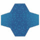 "A soccer ball design with black and white pentagons surrounding a central blue area featuring a dot pattern. Below, the flat pattern layout is shown."