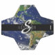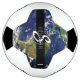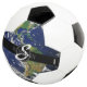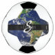 Bola de futebol personalizada com o planeta Terra como fundo. Adicione seu nome e inicial. Mostrado em vermelho com uma faixa preta e uma letra branca e cinza.