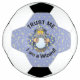 Um velho feiticeiro com capa azul olhando para a bola mágica de cristal.
