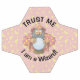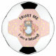 Um velho feiticeiro com capa rosa olhando para a bola mágica de cristal.