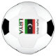 A bandeira líbia negra, vermelha, verde e branca com a palavra LIBYA abaixo. Acima é um lugar para um nome, seu nome, para adicionar uma aparência personalizada ou, o nome de outra pessoa para um presente personalizado de bola de futebol.