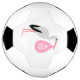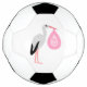 Esta incrível bola de futebol apresenta uma imagem gráfica de uma bela Stork branca com penas pretas de cauda segurando-as num pacote rosa pálido de cobertores. Há um texto cor-de-rosa no pacote que diz "Menina". Esta design é perfeita para celebrar uma menina.