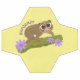 Para amantes lentos! Este primata giro é desenhado no estilo de desenho animado com grandes olhos adoráveis em um galho coberto por flores.