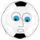 Esta é uma bola de futebol engraçada com um rosto de desenho assustado/surpreso com enormes olhos azuis e design de boca aberta!