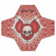 Essa bola de futebol é vermelha com linhas brancas de abstrato em um padrão entrelaçado com uma leitura vermelha feita de ossos brancos com um crânio no centro do coração. Personalize seu texto com o modelo.