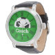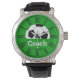 Relógio: Relógio elegante com bola de futebol em um campo verde e texto "Treinador" ou nome personalizado - presentes de futebol, moda futebol, dia dos pais / fã de esportes