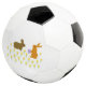 Esta incrível bola de futebol apresenta um par de belos coelhos de Páscoa cercados por flores amarelas de daffodil. Os coelhos são castanhos com orelhas grandes, olhos negros e caudas brancas lisas. Um dos coelhos está segurando um ovo de Páscoa com um bonito arco roxo nele e está se aproximando para oferecê-lo ao outro coelho. Os daffodils são amarelos com um centro laranja brilhante.
