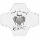 O desenho da coruja com corpo em forma de coração e texto personalizado.