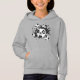 O capuz de futebol desta desportista apresenta uma "explosão" de esferas de futebol de dimensões variadas e formas de estrelas pretas e brancas - um pequeno padrão de bolinhas brancas sobrepõe-se a uma das estrelas pretas - personalizadas com o nome do atleta, o monograma e o número de camisola - o design está na frente do capuz, mas pode ser movido ou duplicado no verso - por katz_d_zynes