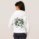 O capuz de futebol desta desportista apresenta uma "explosão" de esferas de futebol de dimensões variadas e formas verdes, pretas e brancas - um pequeno padrão de bolinhas brancas sobrepõe a estrela preta - personalizado com o nome do atleta, monograma e número de camisa - design está na parte de trás do capuz mas pode ser movido ou duplicado na frente - por katz_d_zynes