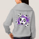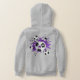 O capuz de futebol desta desportista apresenta uma "explosão" de esferas de futebol de dimensões variadas e formas de estrelas roxas e brancas - um pequeno padrão de bolinhas brancas sobrepõe-se a uma das estrelas roxas - personalizado com o nome do atleta, o monograma e o número de camisola - o design está na parte de trás do capuz mas pode ser movido ou duplicado na frente - por katz_d_zynes
