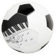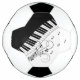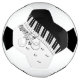 Teclado preto e branco clássico com um estilo curvo. As notas de música acrescentam uma aparência festiva.