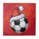 Bola de Futebol Festivo em Santa Hat sobre ornamentos, presentes vermelhos texturizados e decorações divertidas apresentam nossa arte original de uma bola de futebol preto e branco, todos viciados nas férias em um chapéu vermelho de Papai Noel a um ângulo de glória. Esta divertida bola de esportes decorada em feriado é perfeita para fãs de esportes e fãs de Natal. Tenha um Natal divertido e feliz. É tudo divertido e jogos no ITD Sports Center.