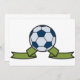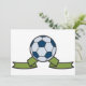 Este design é de uma bola e fita de futebol. É feito um pouco como uma faixa. A fita é verde e no meio ela sobe para uma bola de futebol. Esta bola de futebol e design de fita parecem excelentes nestes convites