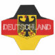Casaco da Alemanha. A casaco de braços da Alemanha exibe uma águia negra (a "águia federal", antiga Reichsadler "Águia imperial") em um escudo amarelo (Ou, uma águia exibindo um calcanhar). Trata-se de uma reintrodução do casaco de armas da República do Weimar (utilizado em 1919-1935), adotado pela República Federal da Alemanha em 1950. A atual design oficial deve-se a Tobias Schwab (1887-1967) e foi introduzida em 1928.