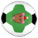 Esta incrível bola de futebol mostra um desenho engraçado de um rato de Natal com grandes olhos redondos, orelhas cor-de-rosa, um nariz rosa pequeno e uísques giros e fofinhos. O rato está vestindo um chapéu de Papai Noel vermelho e branco pronto para o Natal.
