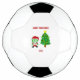 Aqui vocês podem admirar um dos desenhos de Natal, eu chamo, "FrankenCheese de Natal", FrankenCheese vestido de Papai noel, com uma árvore de Natal decorada, o texto diz, "Feliz Natal". Agora você pode pedir, "FrankenCheese de Natal", nesta bola de futebol para desejar a alguém um Feliz Natal."