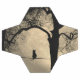 Lua de cheio fantástica com um gato preto em fio olhando para ele