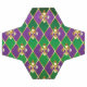 joias, fundo em Mardi Gras de losango roxo e verde, lírios de ouro decorados.