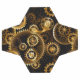 Sem costura, metal, latão, engrenagens douradas sobre fundo escuro enferrujado. Estilo Steampunk.