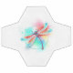 Vermelho, voador, desenhado artisticamente, em cores brilhantes com asas iridescentes texturizadas, azuis sobre fundo branco, pintado sobre salpicos de tinta aquosa. Libélula vermelha brilhante.