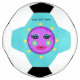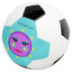 Esta bola de futebol personalizada tem uma lua roxa fantástica cercada por estrelas amarelas brilhantes com um rosto fofo que tem lábios cor-de-rosa, bochechas estelares, olhos azuis sobre um fundo azul aqua. Personalize seu texto com o modelo.