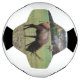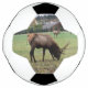 Esta bola de futebol tem a minha fotografia de uma casca masculina castanha com grandes galhadas a pastorear num campo de grama com um celeiro castanho ao fundo. Personalize seu texto com o modelo.