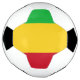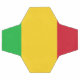 Bandeira do Mali. A bandeira do Mali (francesa: Drapeau du Mali) é um tricolor com três faixas verticais iguais. A partir do manípulo, as cores são verde, dourada e vermelha, as cores pan-africanas. A bandeira é idêntica à da Guiné, com a ressalva de que as cores estão em ordem inversa. A bandeira atual foi adotada em 1º de março de 1961. A bandeira original foi adotada em 4 de abril de 1959, quando o Mali aderiu à Federação Mali. Esta bandeira era a mesma, exceto que a faixa de ouro tinha uma figura humana de pau, uma kanaga, a preto, com braços erguidos ao céu. A figura foi removida devido ao aniconismo islâmico (a crença contra fotos fazeres da figura humana).