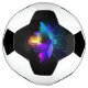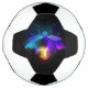 Voz mecânica, antiga, com lâmpada e asas finas brilha cor de laranja, roxo, turquesa sobre fundo preto. Estilo Steampunk.