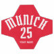 Design do fundo vermelho com a palavra Munique e número e nome personalizados.