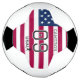 Take your game to the next level with this high-visibility soccer ball featuring a bold "Stars and Stripes" national design. This regulation-style ball is constructed for durability on the pitch, making it perfect for training sessions or competitive matches. The central panel displays a vibrant American flag background, personalized with a custom name and jersey number. To ensure the text stands out during play, each character is finished with a crisp white outline for a professional, athletic look. It is the ultimate personalized gift for any soccer player or dedicated "Team USA" supporter.