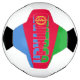 Eritreia Flag Patriotic Soccer Ball com a inscrição "Eritreia", em branco, mostrada na parte central do espaço imprimível. A inscrição é feita com o padrão da bandeira nacional eritreia nas cores verde, vermelha e azul. Os ramos de oliveira estão integrados e infundidos na inscrição. O pano de fundo está coberto pela combinação das cores da bandeira nacional eritreia. O futebol com bandeira eritreia é o presente perfeito para qualquer fã de futebol eritreu orgulhosa do seu patrimônio.