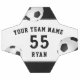 Bola Personalizada de Futebol com Equipe de Jogadores, Nome e Número para um Jogador de Futebol - Jogador de Futebol. O design é preto e branco com três bolas de futebol nos cantos. Personalize a bola de futebol com o nome da equipe, o número da equipe e o nome do jogador. O texto é preto sobre fundo branco. Excelente para um jogador de futebol, amante de futebol, como um presente ou uma bola de manutenção.