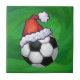 Bola de Futebol Festivo em Santa Hat sobre ornamentos verdes, presentes e decorações divertidas de feriado exibem nossa arte original de uma bola de futebol preto e branco, todas vestidas para as férias um chapéu vermelho de Papai Noel contra um fundo verde com nossa textura seca de pincel. Esta divertida bola de esporte decorada em feriado é perfeita para qualquer um que ama esportes e decoração para as férias. É tudo divertido e jogos no ITD Sports Center.