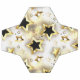 Um padrão sem costura de joias, ouro e estrelas pretas em fundo texturizado levemente. Estrela do ouro.
