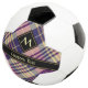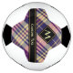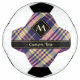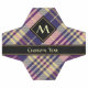 Design púrpura, ouro amarelo e tartã azul. Um padrão perfeito. Texto personalizado e monograma.