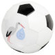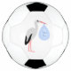 Esta incrível bola de futebol apresenta uma imagem gráfica de uma bela Stork branca com penas pretas de cauda segurando-se num pacote azul pálido de cobertores. Há um texto azul no pacote que diz "Menino". Esta design é perfeita para celebrar um menino.