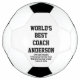 Melhor Treinador do Mundo personalizou texto personalizado Esfera de futebol. Texto preto totalmente personalizável, fundo branco sólido e plano.