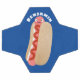 Este cachorro quente engraçado está pronto com ketchup para o almoço! Desenhado no estilo de desenho animado.