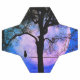 Lua de cheio fantástica de matizes roxos e céus azuis cobaltos com um gato preto a olhar para ele