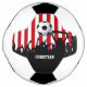 Um design único e personalizado de futebol com uma silhueta de fãs de futebol em preto com uma bola de futebol em um fundo vermelho e branco de listras. Personalize o texto para adicionar o nome do jogador de futebol ou do fã de futebol ou adicione o texto de sua escolha. Se você quiser que este design em uma combinação de cores diferente corresponda às suas próprias cores de equipe, entre em contato conosco através de nossa loja GiftsBonanza.