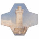 Rodes. Joseph Mallord William Turner (1775 - 1851). Uma paisagem agradável em tons rosas e azuis. No primeiro plano estão barcos e naves na baía perto das paredes da cidade. no meio, há uma torre alta. Ao fundo há uma cidade com casas de pedra. Reprodução de famosas imagens de arte no dominio público.