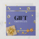Design festivo glamouroso de alta qualidade, com caixa de presente de ouro de luxo, arco e fita com estrelas de ouro e bola de árvore de Natal sobre um simples fundo azul pastel. Esta elegante e moderna certidão de presente é perfeita para a sua pequena empresa ou para oferecer amigos e família, especialmente para as férias de Natal.