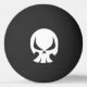 Esta bola do pong do sibilo tem um crânio nela. É uma de uma variedade de quatro variedades de bolas de ténis de mesa pretas do crânio obteníveis de Superkalifragilistic.