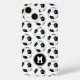 Esta capas de iphone de temas de futebol fofo apresenta um padrão simples de bolas de futebol que têm painéis pretos e brancos sobre um fundo branco personalizável - personalizar com o monograma do atleta - por katz_d_zynes