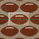 A pintura de um futebol marrom rústico com costura branca é feita em fila, em tecido marrom-claro. Obrigado por comprar em CherylsArt no Zazzle.